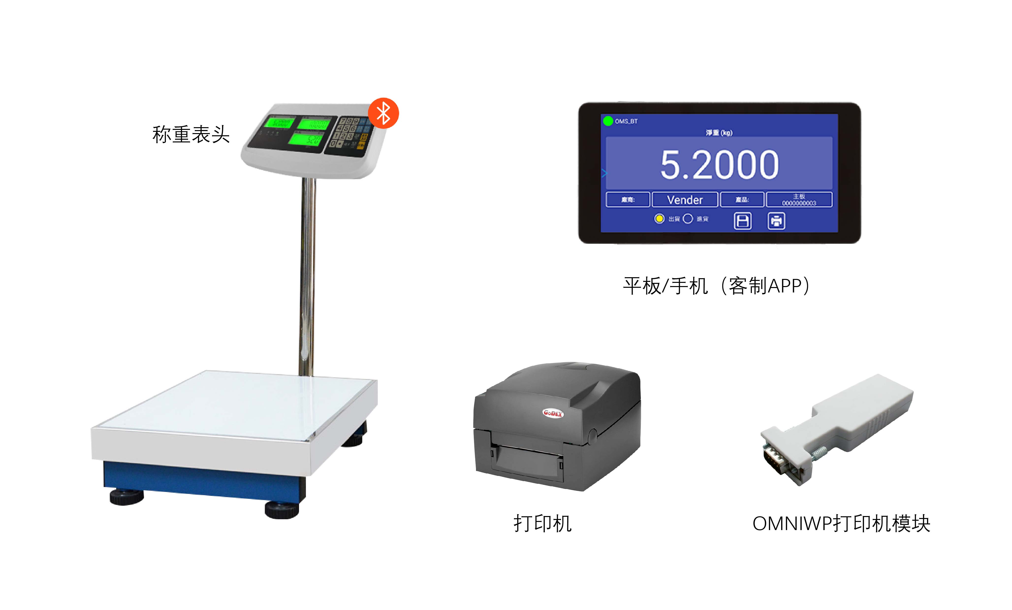 智能标签秤主要采用蓝牙通信方式,为用户摆脱旧式称重表头的局限,提供可移动性、便携性更高的解决方案。