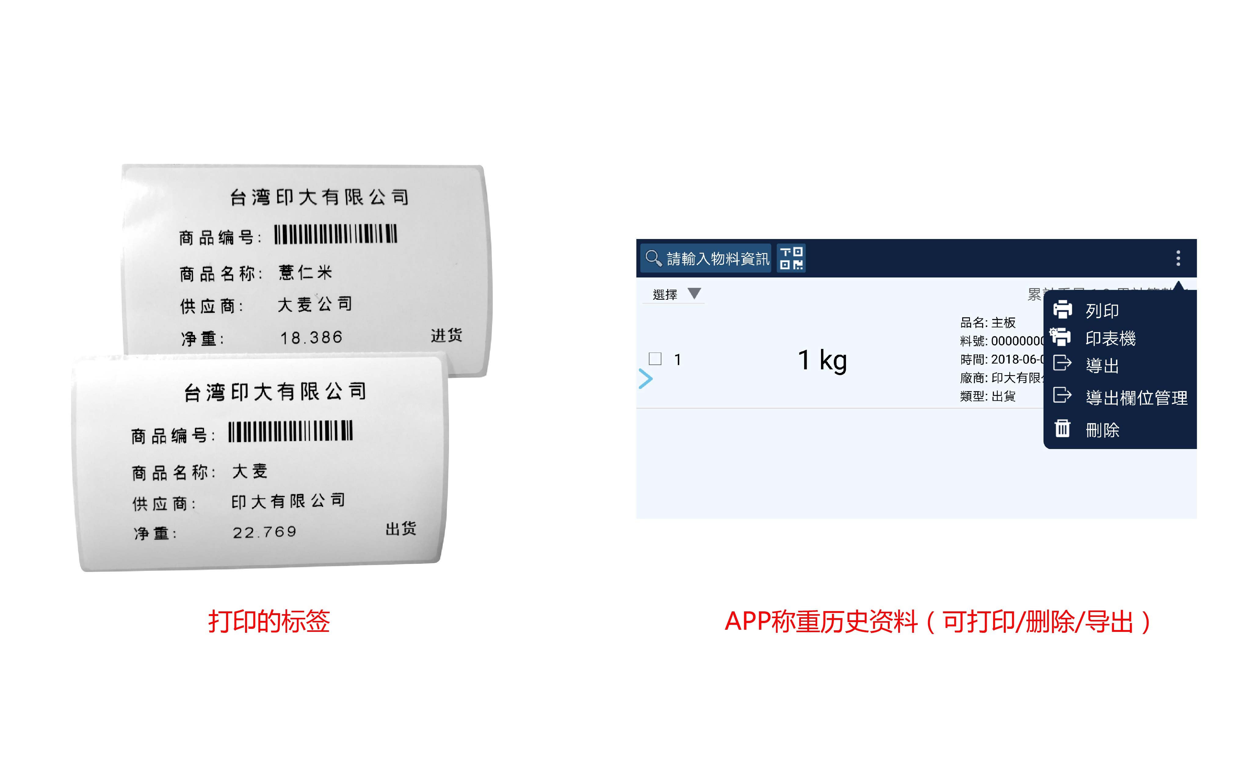 台湾印大有限公司,主要制造包括电子天平、电子秤、称重表头等,且专注条码标签设计。目前,印大制造的称重表头应用在各个领域。称重时产生的数据只能在笨重的称重表头上点击按钮挨个翻看,物料无法创建和打印等问题出现,因此一套灵活易操作的智能标签秤方案尤为重要。