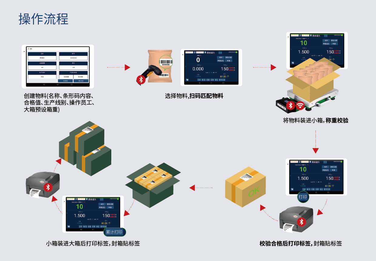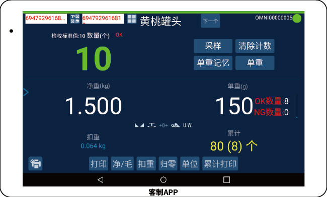 宁波顶尖防错检重系统,利用无线数据传输,整合手机/平板上的APP软件、秤台和打印机,帮助用户在生产包装操作中摆脱传统硬件的束缚,是一款灵活、高效的智能解决方案。