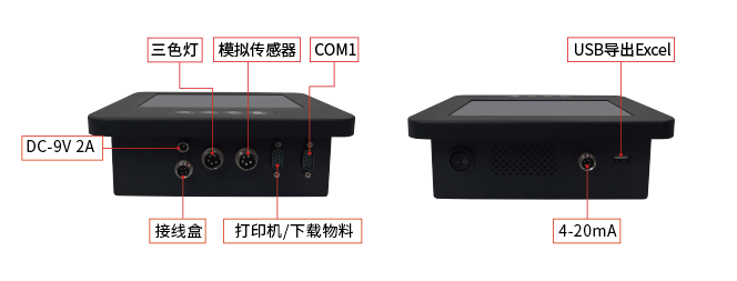 外接U盘保存称重数据;外接PC、打印机、三色警示灯、LED大显示屏、扫描枪、蓝牙标签下载模块。