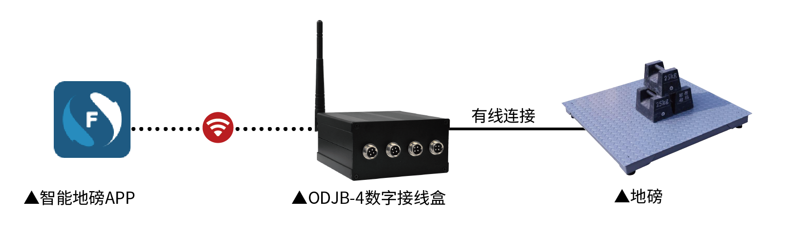 智能地磅APP通过wifi连多个ODJB数字接线盒,可单台地磅选择物料或多台地磅批量选择同一物料计重或计数、标签设计及打印、远程数据对接、权限管理、数字传感器调角、侦错、标定零点AD、校正、创建编辑物料、统计报表等。