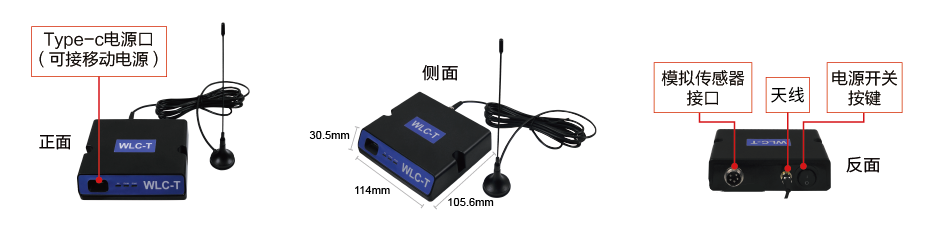 WLC-T:通过信号线连接称重模拟传感器,将模拟信号转换为无线信号发送出去;